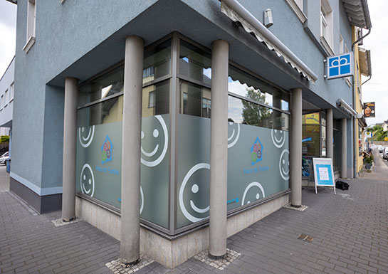 Fensterbeklebung für ein Haus der Familie mit Second-Hand-Laden