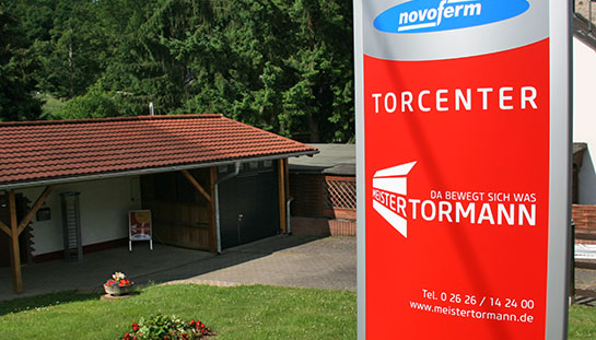 Beleuchteter Pylon im Design der Einrichtung