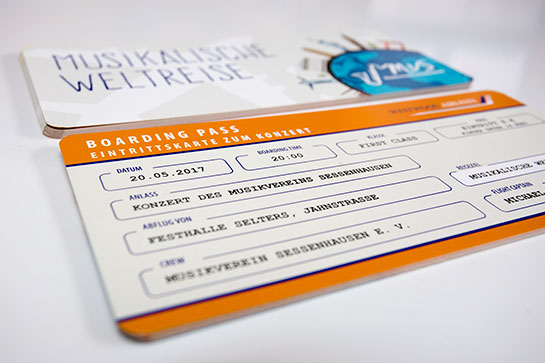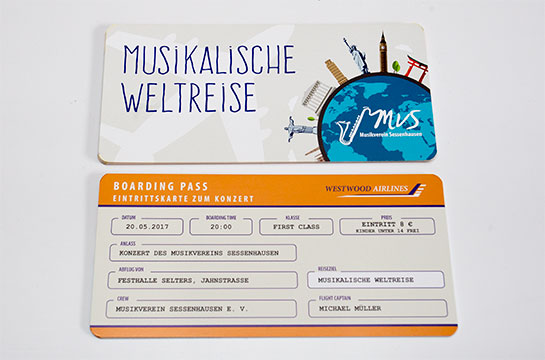 Eintrittskarten und Plakat für das Konzert "Musikalische Weltreise"