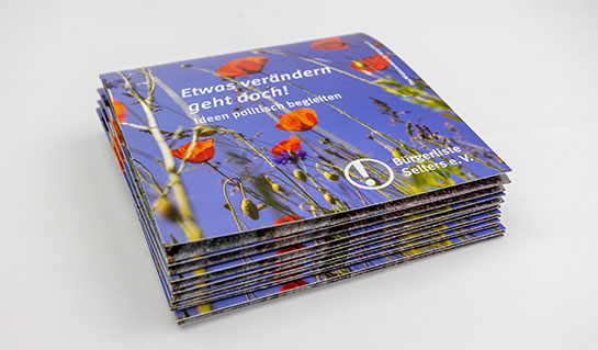 Ausklappfler für einen politischen Verein mit Menschen, die Ideen umgesetzt haben. Konzeption, Fotografie, Text und Design