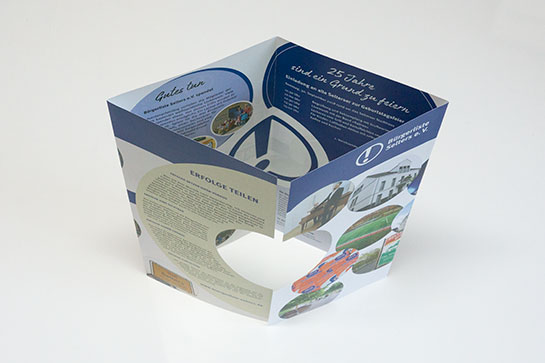 Großformatiger Flyer mit Stanzform für das Jubiläum eines politischen Vereins