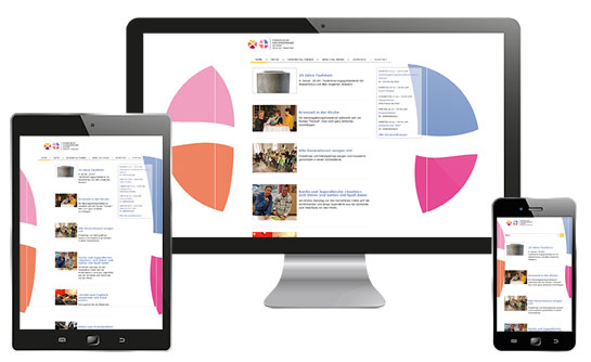 Drei Kirchengemeinden betreiben eine gemeinsame Homepage. Responsive Design im CMS.